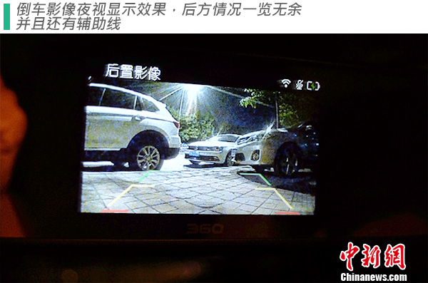 值得一提的是,倒车影像启动非常迅速,特穆安装时,将后摄像头的电源与倒车灯连接,在实验中,倒车影像的启动非常迅速,基本与挂倒车档同步。而关于这个问题,在以前其他产品的试用中,多多少少会有挂倒档后倒车影像画面延迟显示的现象。这一个小小的细节背后,涉及到一些硬件基础的架构,由此看出360诚意十足。