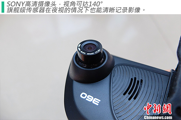 360行车记录仪M301主摄像头采用SONY全高清图像传感器、IMX323,1/2.9英寸的CMOS,并且辅以4片高清球面玻璃镜头组,以及1块红外滤光片,在夜晚也能将前方画面一网打尽。140°的拍摄视角完全可以覆盖车辆前方情况。
