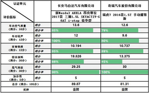 本批发布的两款车型,在车内空气质量、车内噪声、有害物质以及尾气排放的得分率都较高,甚至在车内噪声和尾气排放分值上出现了满分的情况,生态性能较优。