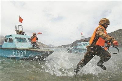 经过4个多小时的水上巡逻,官兵们抵达任务点,未有片刻休息,又开始进行抢滩登陆演练。涉水前行,跨越障碍,占领有利地形……巍巍高原,见证着新一代高原水兵的忠诚和信念。(刘晓东 摄影报道)
