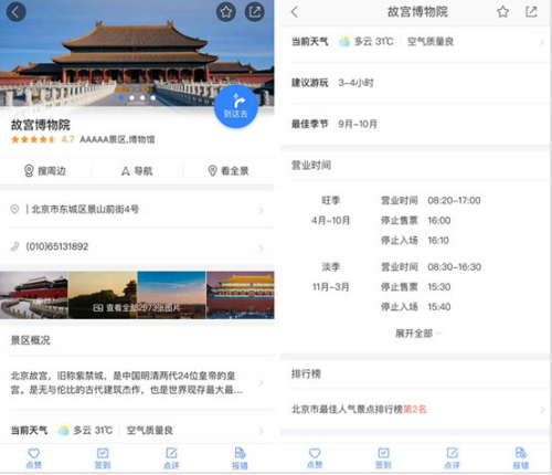 不只是3D地图,百度地图景点详情页也进行了改版升级,深度融入大数据挖掘、AI技术,全程根据用户偏好精准进行智能推荐。同时丰富页面内容,增加景点榜单、用户游记、最佳旅游季节等信息,不仅增加用户互动性,也使得页面设计更为美观易读,让用户在百度地图里放心探索陌生城市,规划旅行行程。