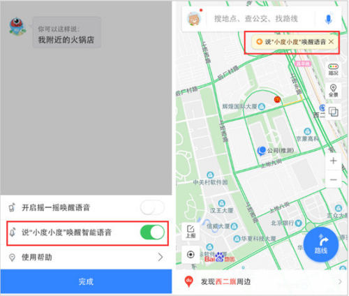 新版本中,用户只需在百度地图“个人中心-设置”或语音主页“设置”中开启主动唤醒功能,即可在使用百度地图的任何界面时对手机说出“小度小度”唤醒语音,无需手动操作便可实现对百度地图的全面操控。比如驾车导航途中询问“小度小度,还有多久到”、“小度小度,还剩多远”等信息,百度地图智能语音都会及时回应,宛如置身科幻世界享受AI助理服务。