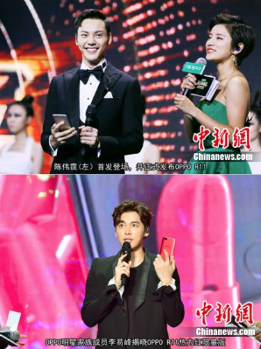 作为开场嘉宾陈伟霆携最新拍照手机OPPO R11亮相,成为此次盛典的第一个重要发布时刻。最新拍照手机OPPO R11,除继续保持轻薄的时尚机身,在拍照方面亦实现了全新的突破与升级,并针对常用的人像拍摄提供了专业的解决方案。前后2000万像素摄像头,带来更强大的人像捕捉及更出色的拍照体验;作为王者荣耀官方技术合作伙伴,OPPO R11的游戏性能也得到全面提升。