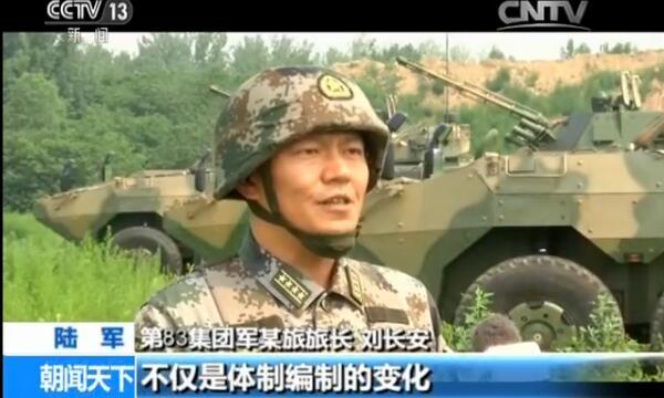 陆军第83集团军某旅旅长刘长安:新一轮军队改革不仅是体制编制的变化,更是对战斗力的优化完善,特别是带来指挥方式的转变。现在旅营两级都编配主战、支援、保障等多个兵种,指挥要素扩展,指挥对象增加,但是部队作战效率不减反增。