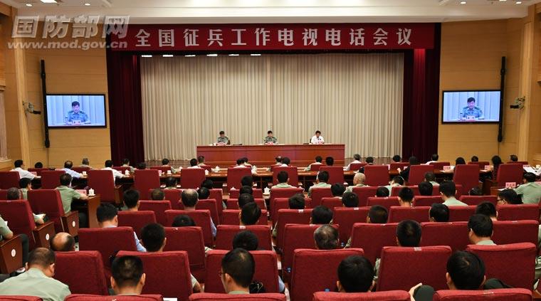 2017年7月21日,全国征兵工作电视电话会议在北京召开。图为主会场。胡耀中摄