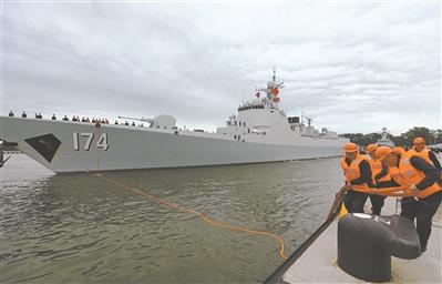 中方参演舰艇6月18日从海南三亚某军港起航,航经印度洋、大西洋,航行途中,编队组织了针对性训练,并进行了海上航行补给。