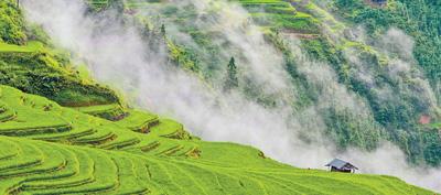 夏日,贵州黔东南苗族侗族自治州从江县加榜乡云雾缭绕,翠绿的梯田时隐时现。