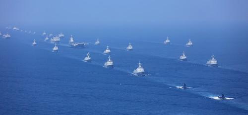 资料图片:这是航母打击作战群等接受检阅。新华社发
