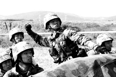 清华大学国防生参赛队在“精武杯”军事项目对抗赛中进行手榴弹投准课目比赛。彭希摄/光明图片