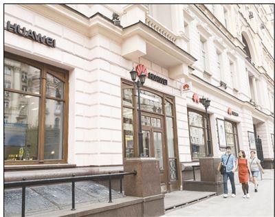 位于莫斯科特维尔大街上的华为手机旗舰店。本报记者 屈 佩摄