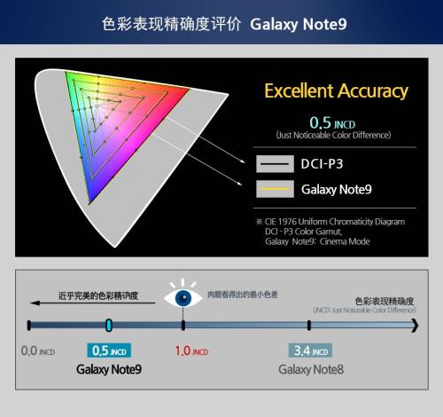 对此,三星表示“随着AR内容的增加,能够实现逼真现实的显示屏受到的关注度越来越高,因此,我们研发了高难度的色彩调整技术,可以提高色彩的精准度,相对于Note8的3.4JNCD ,GalaxyNote9的色彩精准度改善了85%以上。”