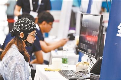 参赛选手头戴特殊“装备”,全神贯注地端坐电脑显示屏前,身体一动不动,屏幕上却逐行显现出文字——这是脑控类比赛的脑控打字项目。由清华大学医学院等单位联合主办的这项赛事,基于清华高小榕教授领衔研发的“动态窗稳态视觉诱发电位脑机接口系统”,人只需将注意力集中于屏幕上的模拟键盘,系统就能把脑电信号翻译成对应文字,这一研发对“渐冻症”等失去行动能力的人士,意味着恢复与外界对话,甚至操控机械设备的可能性。北京青年报记者在比赛现场看到,下至中学生,上至退休老人,脑控类比赛的选手身份多样。经过三天比拼,来自上海赛区的顾天宇摘得综合奖冠军,而获得p300脑控打字项目第一名的毛芳淇,是北京十一学校的一名高一女生。