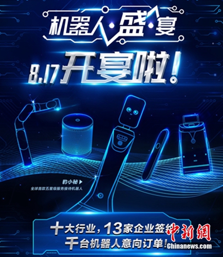 中新网8月20日电 8月17日,一场名为《机器人•盛•宴》的主题签约仪式在京召开。全球知名移动互联网企业——猎豹移动携旗下人工智能公司猎户星空,与来自十大行业的13家企业签订了千台“豹小秘”机器人的意向采购订单。猎豹移动董事长兼CEO傅盛,优客工场、日升天信、侣程科技、新新人类等企业负责人出席了签约仪式。在工业机器人一直主导行业发展的大背景下,这一场千台意向订单的《机器人•盛•宴》不啻为服务机器人产业在中国的破冰之举。