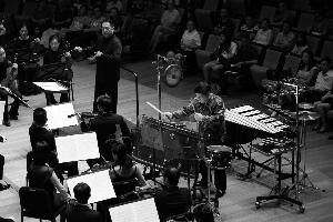 施万特纳是一位受多种现代音乐风格影响的美国作曲家,他的这部《打击乐与管弦乐队协奏曲》,融合了法国印象派、非洲元素和极简主义等风格,并且延续了其作品一贯的戏剧性和哲理性,是施万特纳上演率最高的作品。在当晚的演出中,音乐家们以卓绝娴熟的演奏技巧,让热情澎湃的打击乐与色彩斑斓的管弦乐相得益彰,并以重复又富于变化,简约却气势磅礴之感,向人们证明了打击乐的无限潜力与不可思议。在音乐激情之处,李飚在舞台中央以出神入化的技法演绎颤音琴、响板、钹、水锣等打击乐器,带给观众非凡的视听震撼。曲末李飚高超炫技的独奏华彩乐段使音乐逐渐到达了戏剧性的高潮,引得全场观众热血沸腾。