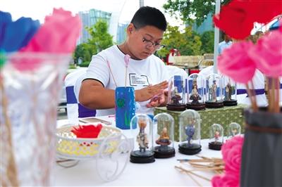 昨日上午,“巧匠在民间”七夕民俗艺术展在通州运河文化广场举行,手艺人在展示面塑工艺。本版摄影/新京报实习生 陈婉婷
