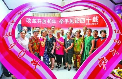8月16日,河北省邯郸市复兴区铁路大院街道组织辖区婚龄满40周年的夫妇,开展“改革开放40年,牵手见证四十载”迎幸福七夕活动。图为这些婚龄满40周年的夫妇拍摄合影。郝群英摄/光明图片