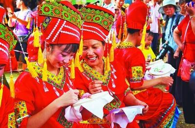8月16日,具有千年历史的广西南宁市蒲庙镇那莲古圩举办一年一度的七夕盛会“赛巧节”。绣花展演、点米成画等民俗活动逐一上演。那莲“赛巧节”至今已有200多年历史,被纳入广西壮族自治区级非物质文化遗产代表性项目名录。光明图片/视觉中国
