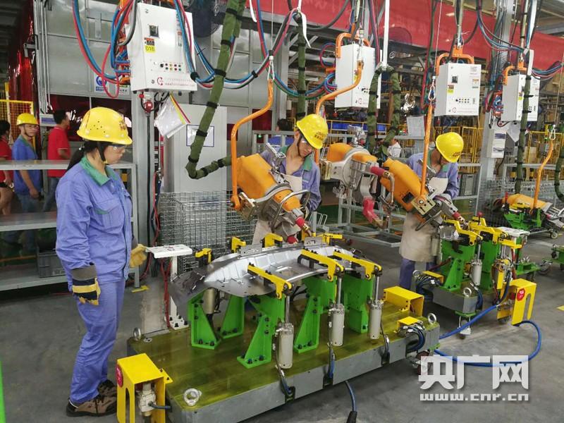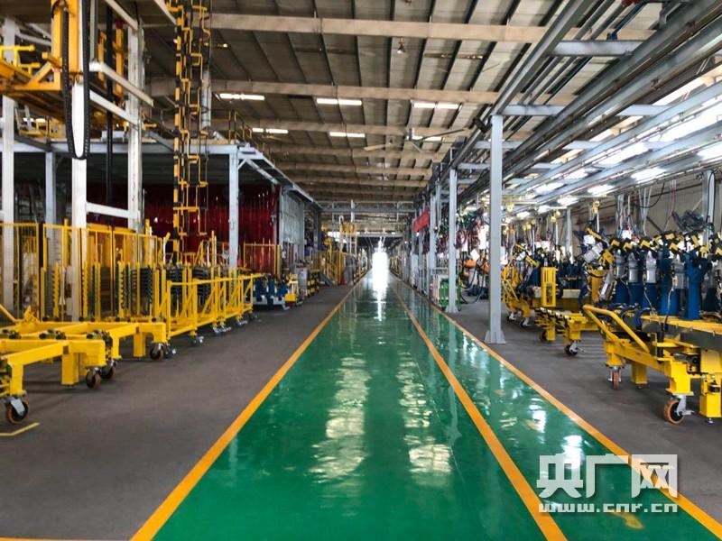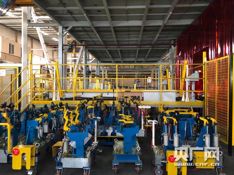 记者来到总装车间内,焊装机器正不间断的工作着。(央广网记者 高寒露 摄)