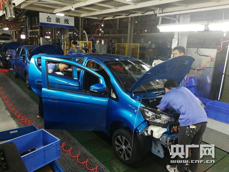 总装厂内,工人正在组装新能源车。合装线主要负责机舱三电系统的安装,是整车下线检验前的最后一道工序组,装好的新能源汽车可以开往试车跑道进行试行,检验新车是否符合下线售卖标准。(央广网记者 李澎摄)