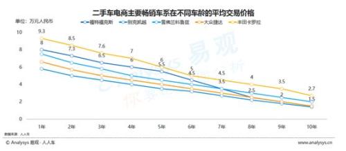 例如二手车在第三年开始交易价格有明显下降,而不同车型的二手车降价速度也会有差异,像热门车型丰田卡罗拉在4-6年车龄时价格下降最快,福特福克斯则是在5-8年,卖家和买家可以参照价格变动曲线来选择交易车型和车龄。
