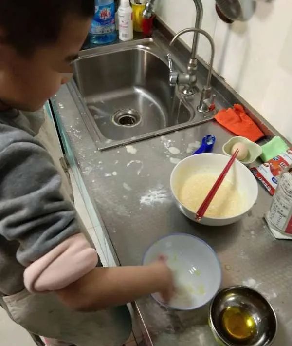 图为“星星的孩子”在跟着网课做家务。拉拉手 供图