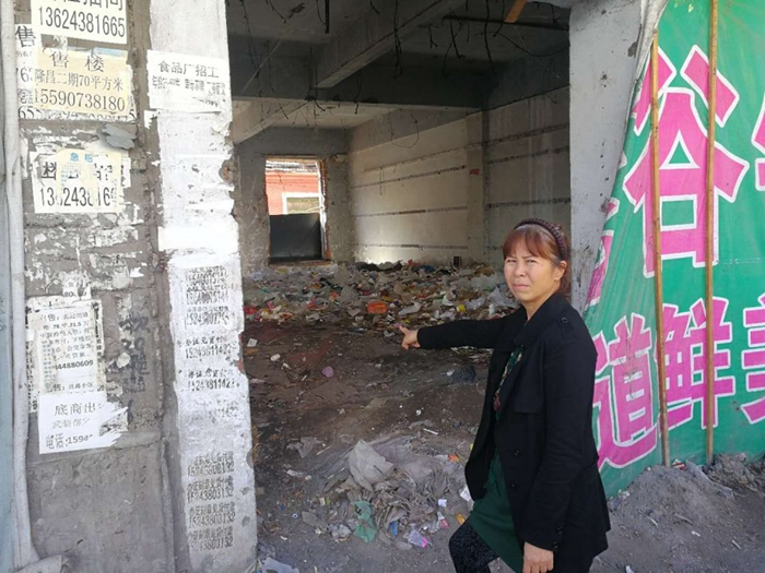 一位开药店的女士称,这里环境太差,多数门市房门窗都没了,里面成了垃圾场,成了厕所,尤其是夏天,臭气熏天,没人来这地方买东西。居民李树军介绍,他家房子是上下三层楼,搬走了,把门窗都拆了,后来一看老是拆不了,现在又回来在一楼住着,没有暖气,冬天太冷了,地方又小,太受罪了。