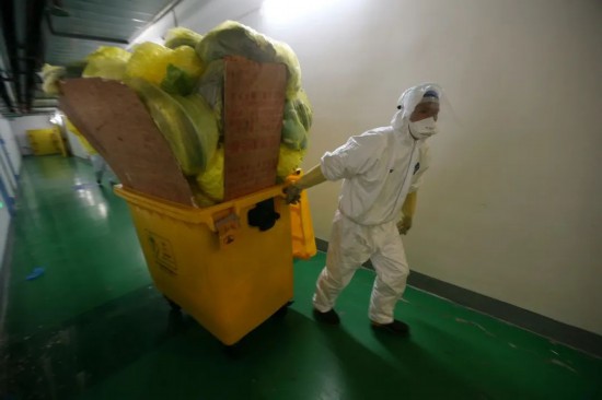 在被问到承担这样一项危险的工作时是否感到害怕,一位负责处理医疗废弃物的师傅称,“其实我们也害怕,但是不顶上去不行,我就告诉自己我们这是在为国家做贡献。”