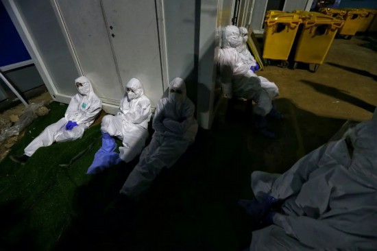 雷神山医院负责处置清运医疗废物的志愿者们(摄影: