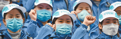 2月9日,山东大学第二医院支援湖北抗疫国家医疗队中的党员在出发前重温入党誓词。 |