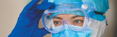 2月2日,重庆三峡中心医院,医生黄霞在进入重症隔离病房前做防护准备。面对新冠肺炎疫情,37岁的黄霞主动申请调到新组建的重症肺炎应急病区,参与临床救治。 |