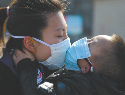 2月18日,轮班休息的护士李菁与分离25天的孩子紧紧拥抱在一起。1月23日,作为首批医护人员进入河北沧州市人民医院新冠肺炎病房抢救病人后,这是李菁第一次回家。 |