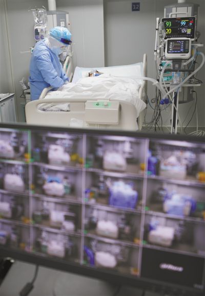 3月4日,在武汉火神山医院重症医学一科,一名护士在精心护理重症患者。 |