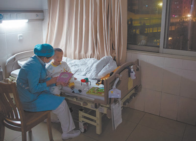 2月3日晚,在广东省第二人民医院,“临时妈妈”护士樊婷正在给2岁半的源源(化名)讲故事,哄他入睡。源源一家6口有5人相继被确诊隔离,剩下源源无人照顾,医院里的28个护士当起了他的“临时妈妈”。 |