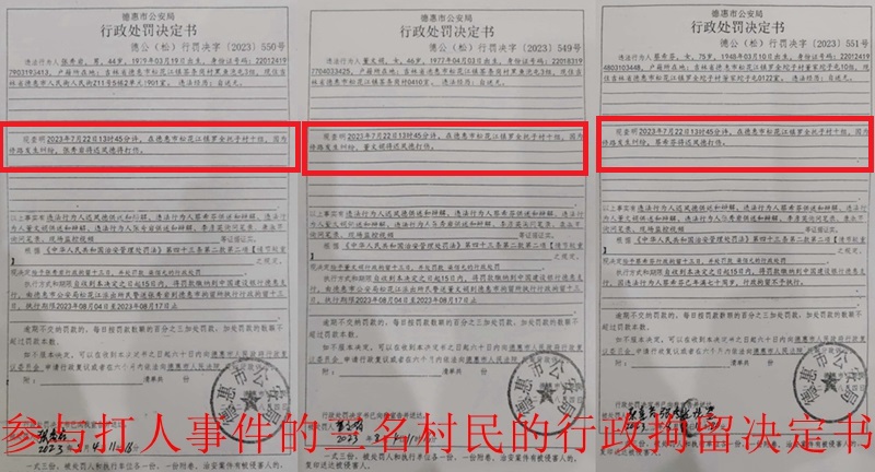 8月4日,警方对参与殴打迟凤德的三人张秀岩、董文娟、蔡希芬同时行政拘留13日,三人的拘留决定书上是这样写的: