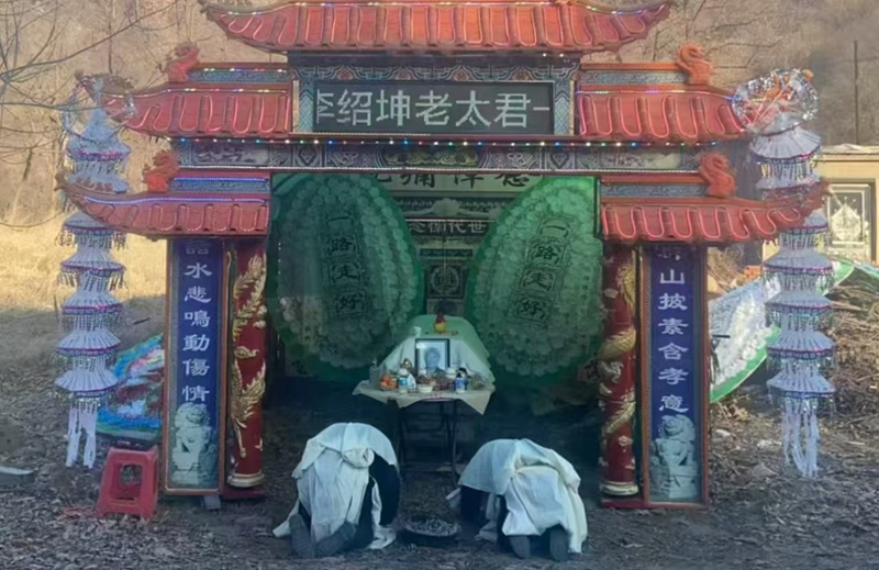 李绍坤老人的儿孙们,这个年是没法过了,灵棚已搭了10天,但因开不出死亡证明而不能下葬,而当地民政局还要在近几天拆掉灵棚。