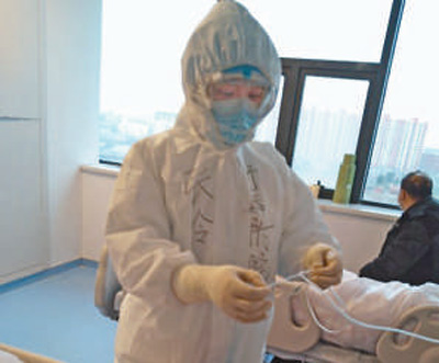 病房由医疗队24小时轮班守护,分为4个班,每班6小时,张岭一到,就连轴转了20多天。喂药、送饭、翻身、心理疏导,病区的卫生、消毒、垃圾搬运……每天上班,张岭恨不得有“三头六臂”。新冠肺炎病人没有家属陪伴,饮食起居都由医护人员负责。