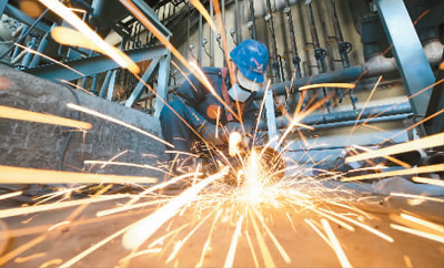 2月22日,山东荣成市安建集团工人正在车间安装大型设备。 |