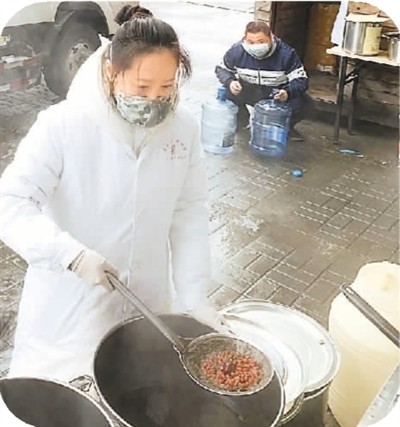 刘文娟正在盛防疫汤。 |