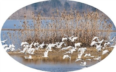 春风一吹,黄陂湖的湖面以一个全新的面貌展现在眼前。白鹭成群地飞翔,在浅滩处落下。也许是小鱼小虾还沉浸在冬眠的梦里,白鹭轻而易举觅得食物,不一会儿,就嬉戏起来,我啄你一下,你啄我一下;一个腾地飞起,一个紧追不舍,湖湾里一片热闹景象。野鹜躲得远远的,在比较隐蔽的地方偷偷地享受捕获的美餐,一有风吹草动,要么扑棱着短翅贴着水面疾驰,在菖蒲、茭白和芦苇丛中隐蔽好。要么一个猛子扎下去,在很远的地方露出头,警觉地东张西望。若没危险,就大摇大摆地游弋;若觉得还不安全,继续扎猛子,或就近躲藏。它们凭着敏锐的听觉和经验判断形势,警报解除了,才出来活动。