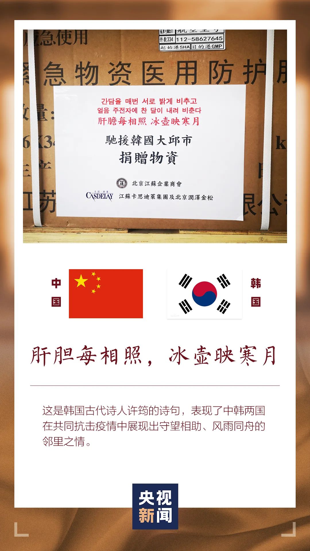 中国在援助物资上写了什么?网友:看到世界诗词大会