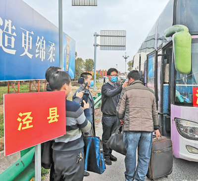 2月25日,安徽泾县统一包车送务工人员去宣城。 |