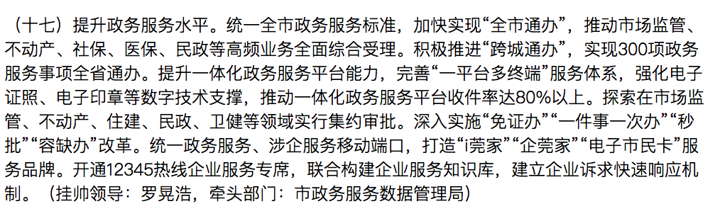 通知包括“东莞市争创一流营商环境攻坚行动方案(2021)”和“附件一:优化营商环境攻坚硬任务清单”和“附件二:东莞市争创一流营商环境攻坚行动任务分解表(2021)”。整个方案态度明确、思路清晰、内容落实到人,从通知中可以看到本届东莞政府改变东莞营商环境的决心。