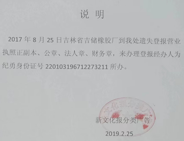 记者从橡胶厂职工们处看到一份吉林省市场监督管理厅于2019年3月28日出具的《关于吉林省吉储橡胶厂登记情况的说明》。该说明称:“经查询企业登记档案,1989年2月16日,吉林省吉储橡胶厂(原长春市橡胶制品二厂)申请办理企业法人开业登记。根据企业提供的《企业法人登记注册资金申报表》记载,长春市橡胶制品二厂经济性质为集体所有制,注册资金为2,651,293元,其中固定资产合计2,122,982元,流动资金528,311元。流动资金中自有资金449,686元,风险抵押金78,625元。1991年6月21日,企业申请变更法定代表人和资金数额。登记档案中,企业提供的企业法人登记注册资金审验证明显示,变更后资金数额为3,479,000元,其中固定资产2,151,000元,流动资金1,328,000元。未显示其他出资单位。1993年10月20日,企业申请将企业名称由长春市橡胶制品二厂变更为吉林省吉储橡胶厂,主管部门由宽城区工业局变更为吉林省储备物资管理局。2017年8月28日,企业申请变更主管部门备案,主管部门由吉林省储备物资管理局变更为宽城区发展和改革局。目前企业资金数额仍为3,479,000元,经济性质未发生改变。”
