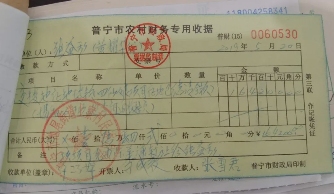 为此,张益利经与现任村主任许巧婵密谋后,便向村委会补交了164200元的“土地转让款”,然后村委会为其开具财务收据。如此一翻内外勾结,不仅让张益利长期霸占集体土地非法谋利的事实得以“洗白”,而且还成功地对抗了巡视组的调查,最终侵吞了集体土地。