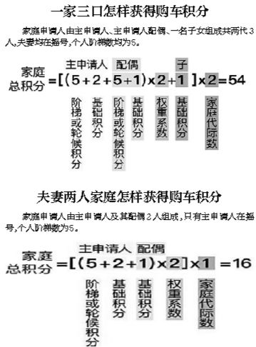 在计算个人积分时,对家庭申请人以前参与过摇号的次数或轮候的时间均转换为积分进行累加。计算家庭总积分时,一是充分体现夫妻作为家庭核心成员的因素,夫妻双方都在摇号的中签倍率高;二是家庭成员在摇号池中人多的中签倍率高;三是家庭有老有小、代际数多的,中签倍率高。