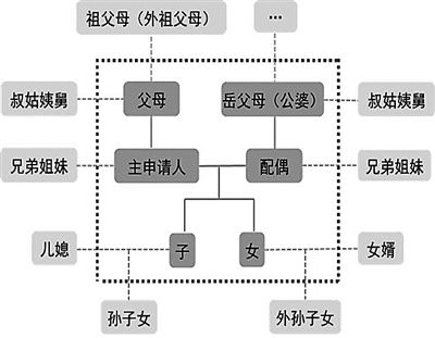 其他家庭申请人可以包括主申请人的配偶、子女和夫妻双方父母,家庭申请总人数不低于2人。