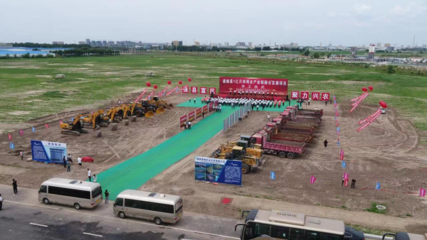 图为吉林通榆县1亿只肉鸡全产业链融合发展项目开工现场鸟瞰图.