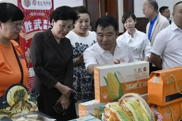 授牌仪式结束后,全体与会人员现场主题参观品鉴“呼兰味道”。哈尔滨市兴利米制品有限公司、哈尔滨市呼兰区大用现代农业农机专业合作社、哈尔滨军怡冷食品有限责任公司、哈尔滨李氏烤鹅有限公司、哈尔滨市信生家禽养殖有限公司、黑龙江胜武食品有限公司、黑龙江奥利施农业有限公司、方台白酒、超越糖果、二八桦树饮品、烘焙协会、白奎兰沃预制菜、双井果蔬等企业现场展示和制作的系列产品给与会嘉宾留下了深刻的印象,大家纷纷为呼兰区打造“中国寒地食谷、龙江中央厨房”的发展方向和要素的集约点赞。(侯志 白铭波 记者杨喜庆)