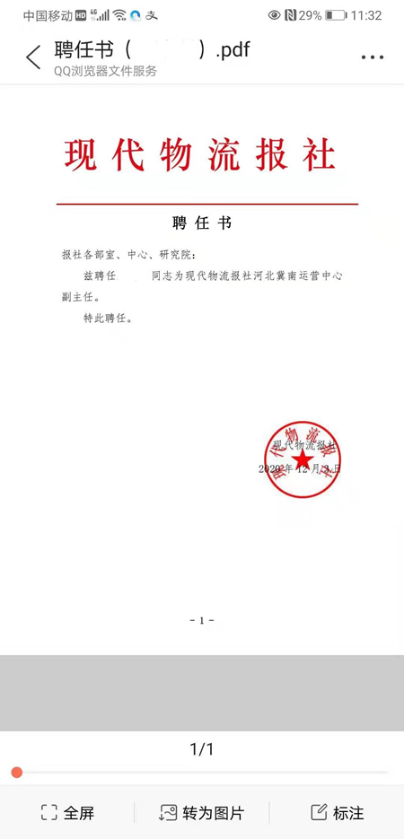 2020年11月5日,河北省《现代物流报》有限公司印发红头文件,即:物报人发(2020)3号文件,聘闵某某为运营总监,负责地方运营中心。据内部人员透露:闵某某跟现代物流报签订5年经营合同。