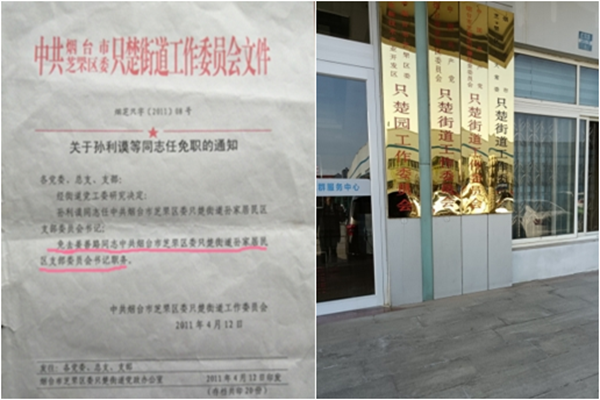 “姜善路,自2008年当上孙家庄村书记一职,因疯狂敛财、破坏水利设施、贪腐等问题,遭村民举报。2011年4月12日,被中共烟台市芝罘区只楚街道工作委员会“免职”。但“免职”后的姜善路却依然掌控着孙家庄大大小小的事务,直到今天摇身一变成为孙家经济合作社的负责人。”村民刘兆波说。